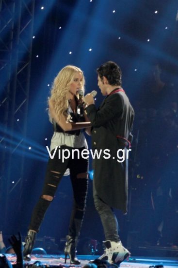 Στα golden stand της αρένας ήταν και η Μαρία Μπεκατώρου, η οποία πήρε το μικρόφωνο, ανέβηκε στη σκηνή και τραγούδησε μαζί του κεφαλονίτικες καντάδες.