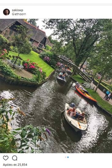 Το ερωτευμένο ζευγάρι αποφάσισε να μην συνεχίσει τις διακοπές του στην Ελλάδα, αλλά να κάνει ένα roadtrip στη Βόρειο Ευρώπη. Πρώτος σταθμός του παρουσιαστή του «Survivor» και της συντρόφου του το Άμστερνταμ, και συγκεκριμένα το μικρό χωριό Giethoorn, το οποίο αποκαλούν και Βενετία της Ολλανδίας.