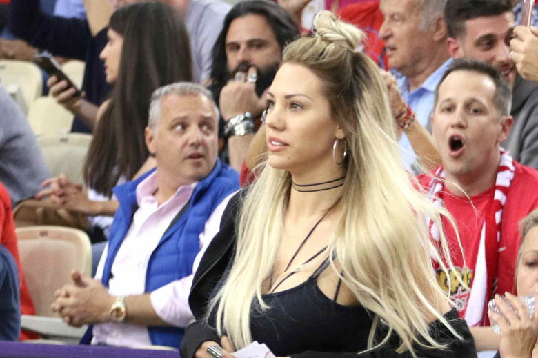 Η Σάσα Μπάστα, με casual ντύσιμο και χαλαρή διάθεση, παρακολούθησε τον αγώνα και δε σταμάτησε να χειροκροτά και να εμψυχώνει τους παίκτες του Ολυμπιακού.