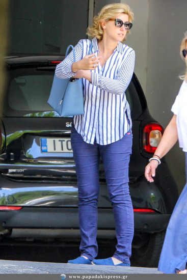 Η παρουσιάστρια του κεντρικού δελτίου ειδήσεων του ΣΚΑΪ απόλαυσε τη βόλτα της στο Κολωνάκι και έκανε τις αγορές της. Η Σία Κοσιώνη ήταν ντυμένη casual, με μπλε τζιν και ριγέ, φαρδιά μπλούζα, που έκρυβε τη φουσκωμένη της κοιλίτσα.