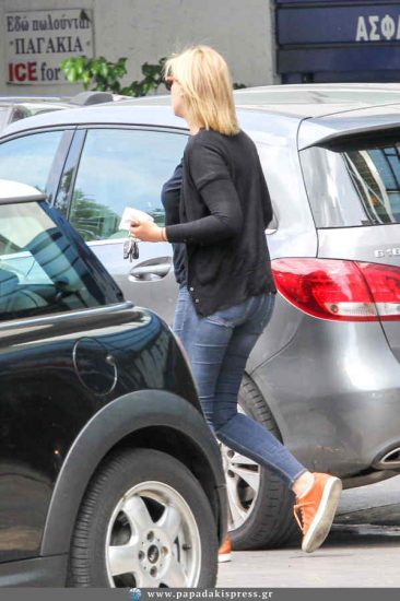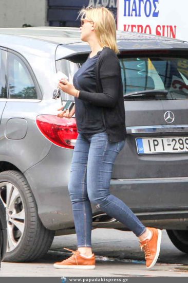 Η παρουσιάστρια του κεντρικού δελτίου ειδήσεων του ΣΚΑΪ απόλαυσε τη βόλτα της με casual ντύσιμο και χαλαρή διάθεση. Η Σία Κοσιώνη φορούσε μπλε τζιν και μία φαρδιά μπλούζα, που κάλυπτε τη φουσκωμένη της κοιλίτσα.