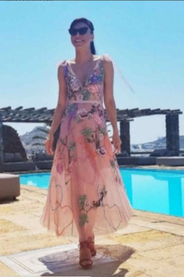 Η interior designer επέλεξε για τη βάπτιση της κόρης της μάξι φόρεμα με κεντήματα, ενώ στο ίδιο ακριβώς στιλ ήταν και το φόρεμα της μικρής. Οι πρώτες φωτογραφίες από τη βάπτιση αναρτήθηκαν στο λογαριασμό του σχεδιαστικού διδύμου Mi-Ro, οι οποίοι επιμελήθηκαν την εμφάνιση μαμάς και κόρης.