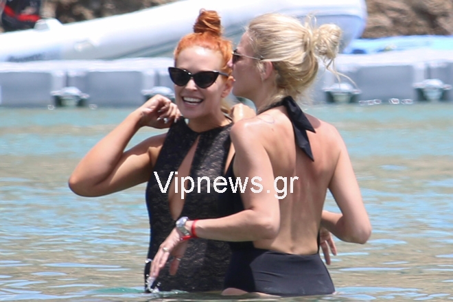 Ξέγνοιαστες στιγμές στη Μύκονο για τη Σίσσυ Χρηστίδου και την Χριστίνα Κοντοβά.