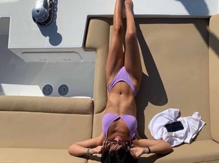 Η εντυπωσιακή τραγουδίστρια φωτογραφίζεται πάνω στο σκάφος, αλλά και στο χείλος της πισίνας με φόντο το απέραντο γαλάζιο σε μια breathtaking πόζα, που αναδεικνύει τις άψογες αναλογίες της.