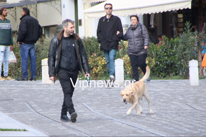 Με τον αγαπημένο τους σκύλο έκαναν βόλτα στην Πλάκα και την περιοχή της Ακροπόλεως ο Θοδωρής Αθερίδης και η Σμαράγδα Καρύδη, σε ένα διάλειμμα από τις επαγγελματικές τους υποχρεώσεις.