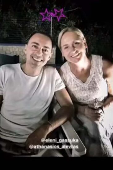Στην Αίγινα μαζεύτηκε όλη η παρέα της με αφορμή τα γενέθλιά της. Ανάμεσα στους αγαπημένους της φίλους ήταν η Ελισάβετ Κωνσταντινίδου, η Αθανασία Σμαραγδή, ο Άλκις Κούρκουλος, η Φωτεινή Αθερίδου με την μητέρα της Ελένη Γκασούκα, ο Θανάσης Αλευράς, η Μαρία Κωνσταντάκη, ο Γιώργος Νανούρης και η Ελένη Σκουλά.