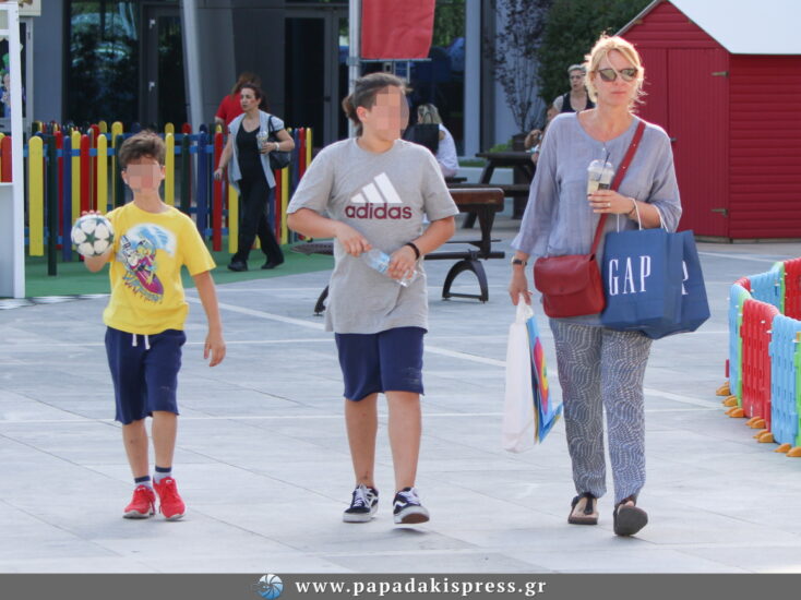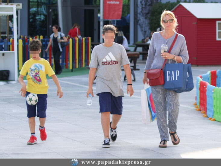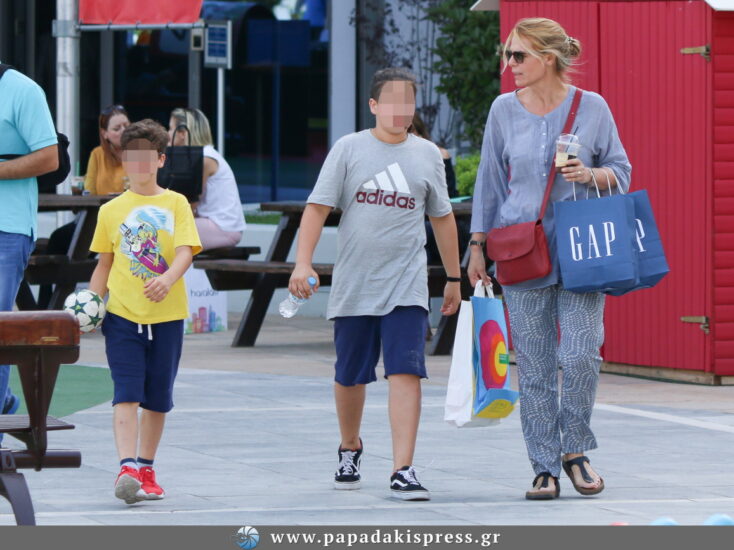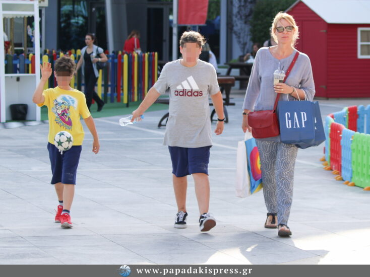 Ο φωτογραφικός φακός απαθανάτισε την Έλενα Κατραβά και τους γιούς της Αλεσάντρο και Ρομπέρτο Καριέρε να κάνουν τη βόλτα τους σε εμπορικό κέντρο.