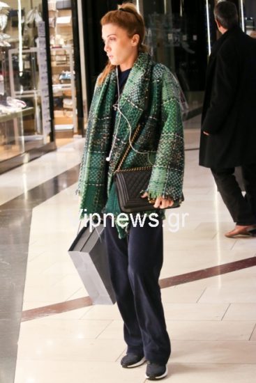 Χωρίς πολύ μακιγιάζ και με χαλαρή διάθεση, η τραγουδίστρια εκανε τις αγορές της και την βόλτα της solo χωρίς να είναι μαζί της ο αγαπημένος της Σπύρος Λάζαρης.