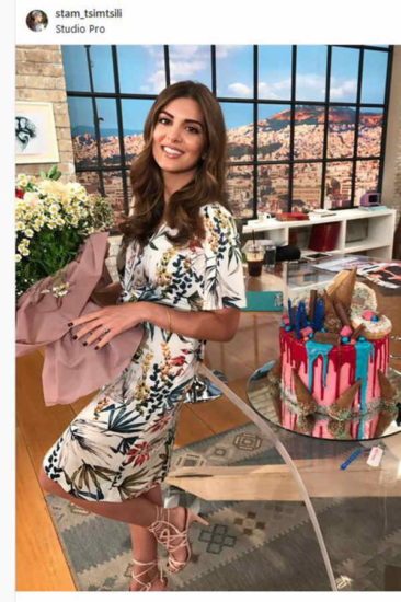 Η παρουσιάστρια δημοσίευσε στον προσωπικό της λογαριασμό στο Instagram μία φωτογραφία στην οποία ποζάρει δίπλα στην τούρτα-υπερπαραγωγή της, ενώ παράλληλα κρατάει την ανθοδέσμη της. «Είμαι birthday girl και πολύ μου αρέσει …σας ευχαριστώ για τις ευχές σας» έγραψε η Σταματίνα Τσιμτσιλή στη λεζάντα της φωτογραφίας, με τους διαδικτυακούς της φίλους να της στέλνουν τις ευχές τους.