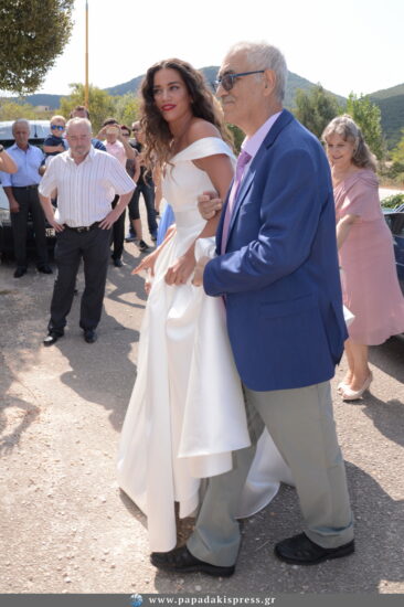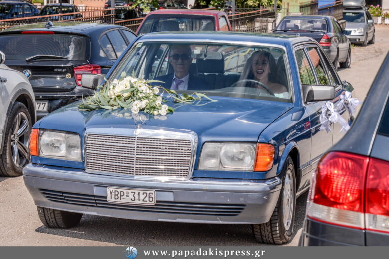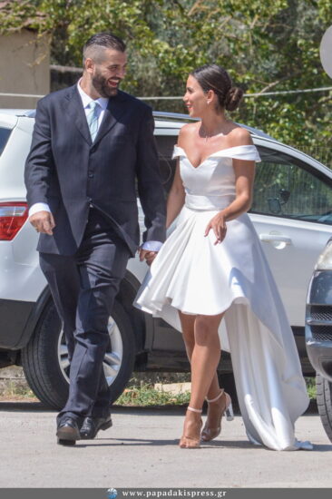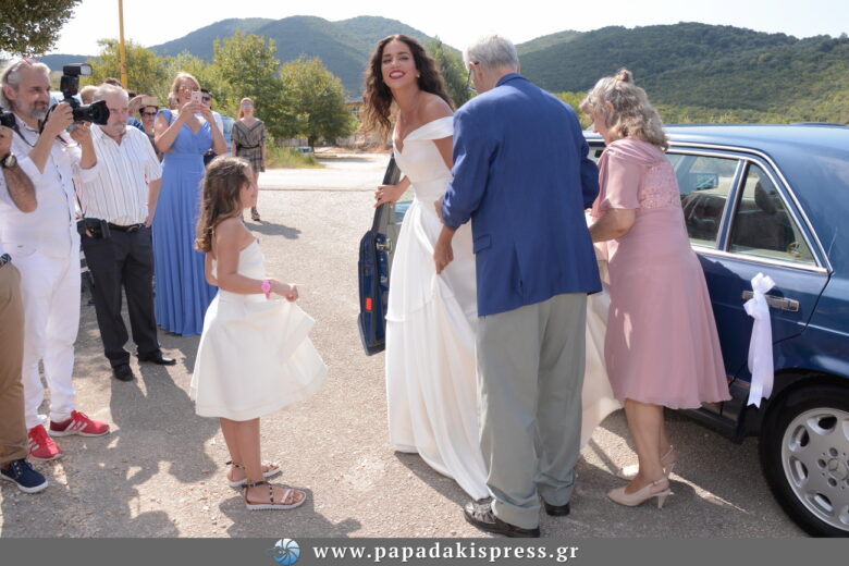 Η τραγουδίστρια έφτασε στην εκκλησία οδηγώντας η ίδια μια παλιά Mercedes, συνοδευόμενη από τους γονείς της. Στιγμιότυπα από την άφιξη του γαμπρού και της νύφης στην εκκλησία αλλά και κατά την έξοδο του αποθανάτισε ο φωτογραφικό φακός.