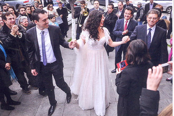 Αμέσως μετά το μυστήριο ακολούθησε το γαμήλιο παραδοσιακό ηπειρώτικο γλέντι, σε στενό οικογενειακό κύκλο, μέχρι τις πρώτες πρωινές ώρες, με την Ελευθερία Αρβανιτάκη, η οποία συνεργάζεται τα τελευταία χρόνια ο μουσικός με την μπάντα του «Τακίμ», να ερμηνεύει «Σήμερα γάμος γίνεται» και το ζευγάρι να ανοίγει πρώτο το χορό.