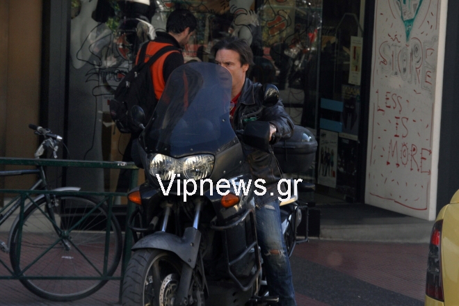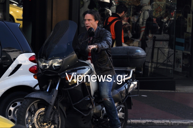 Ο γνωστός ηθοποιός έκανε τη βόλτα του στο Κολωνάκι, επιβαίνοντας στη μεγάλου κυβισμού μηχανή του, με την οποία τον έχει καταγράψει αρκετές φορές ο φωτογραφικός φακός, άλλοτε μόνο και άλλοτε παρέα με τον γιο του Αλκιβιάδη.