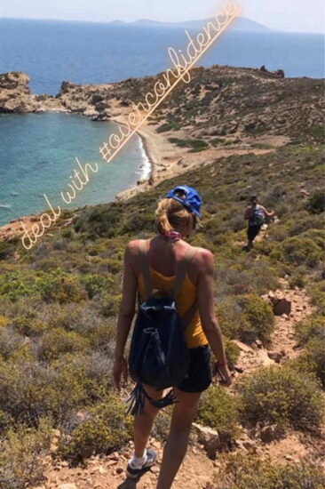 Αποδεικνύοντάς μας για ακόμη μια φορά, πως διατηρεί την εντυπωσιακή της σιλουέτα, η παρουσιάστρια, ανέβασε στο instagram φωτογραφίες της από τις περιηγήσεις της στο νησί της Αποκάλυψης. Κατά τη διάρκεια της βόλτας της αυτής μάλιστα, συνάντησε πάλι τη «φίλη» της την κατσίκα, την οποία πριν από λίγες ημέρες είχε επιδιώξει να «σώσει» από τα βράχια.