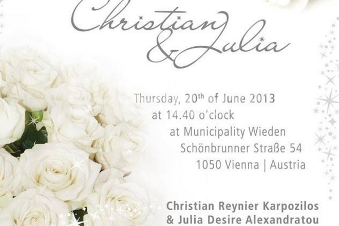 Η σχετική αγγελία είχε δημοσιευθεί στην εφημερίδα «Καθημερινή» και πλέον και επίσημα η Τζούλια ενημερώνει φίλους και γνωστούς ότι ο γάμος θα γίνει στις 20 Ιουνίου στην Αυστριακή πρωτεύουσα.