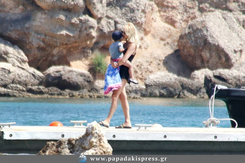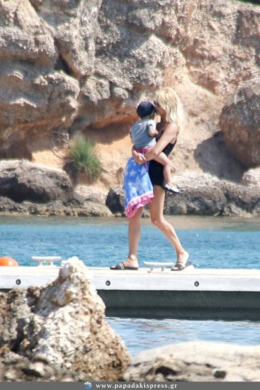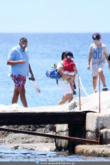 Την Φαίη Σκορδά και τον Γιώργο Λιάγκα απαθανάτισε ο φωτογραφικός μας φακός να απολαμβάνουν τις διακοπές τους μαζί με τους γιους τους στο Πόρτο Χέλι.