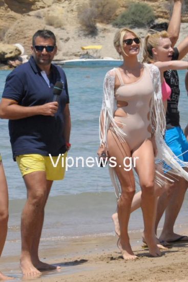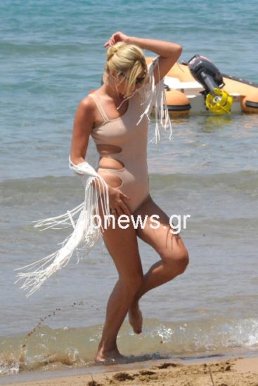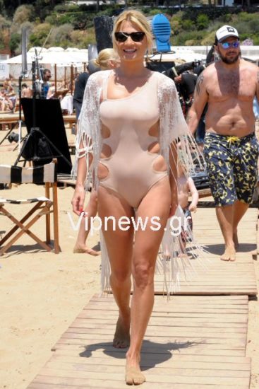 Φορώντας ένα διάφανο χρώματος nude μαγιό, που αναδείκνυε το καλλίγραμμο σώμα της και… αποκάλυπτε κάποια σημεία που ενδεχομένως δεν θα ήθελε να φανούν, όχι μόνο τράβηξε όλα τα βλέμματα πάνω της, αλλά ανέβασε και τη θερμοκρασία στην παραλία σε… επίπεδα καύσωνα! Ο Γιώργος Λιάγκας και ο Δημήτρης Ουγγαρέζος, πάντως, ήταν οι πιο… μαζεμένοι της παρέας…