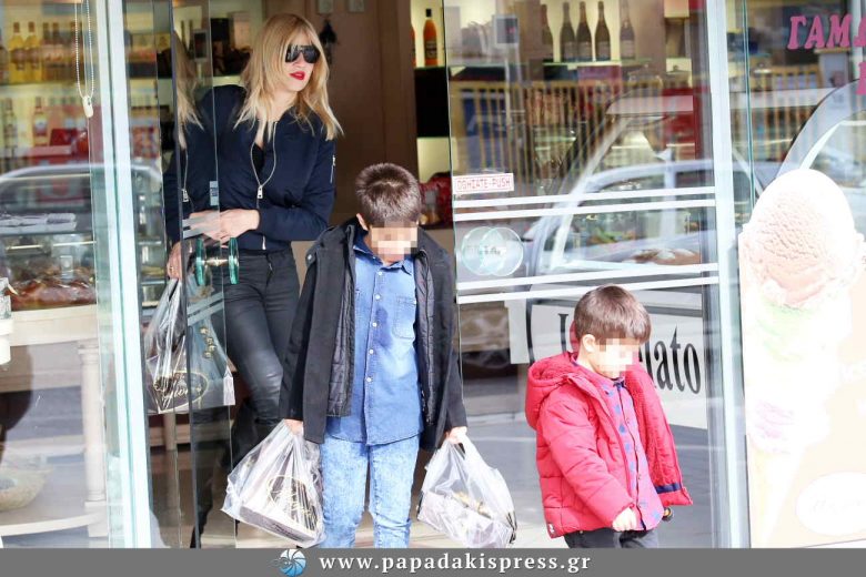 Η παρουσιάστρια, ακόμη και σε αυτή την καθημερινή εξόρμηση με τους γιους της, εντυπωσίασε με το στυλ και την κομψή της εμφάνιση.