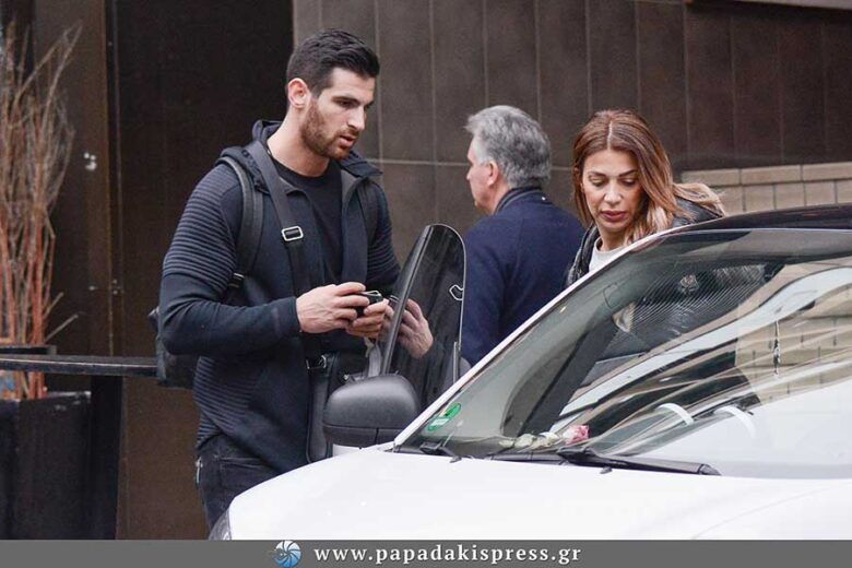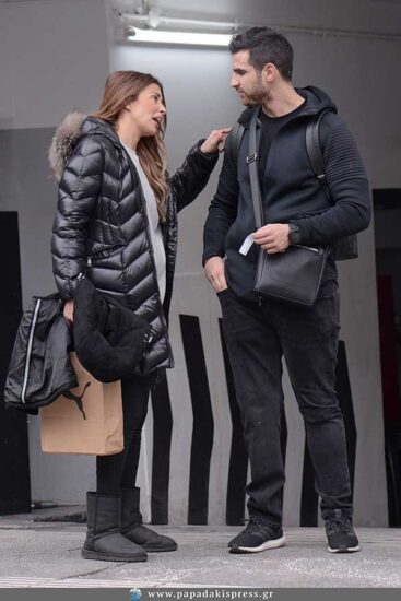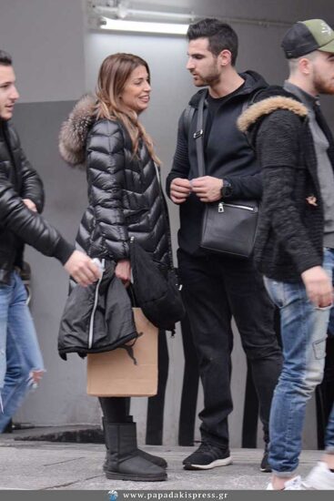 Ο φωτογραφικός μας φακός τους εντόπισε στο κέντρο της Αθήνας, ενώ είχαν ολοκληρώσει τα ψώνια τους και περίμεναν να πάρουν το αυτοκίνητό τους. Ενώ περίμεναν, ήταν πάντα μαζί και ο ένας δίπλα στον άλλο, ανταλλάσσοντας τρυφερά βλέμματα και δείχνοντας πόσο ερωτευμένοι είναι.