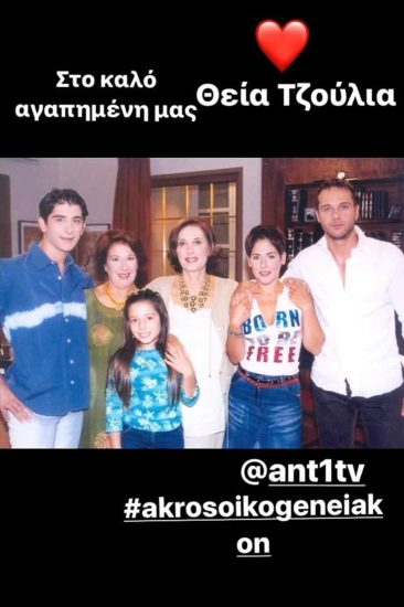 Σε αυτή ήταν αφιερωμένο και το μήνυμα που ανέβασε στο διαδίκτυο όπου δίπλα στην «οικογενειακή» φωτογραφία από τη σειρά, έγραψε: «Στο καλό αγαπημένη μας θεία Τζούλια».