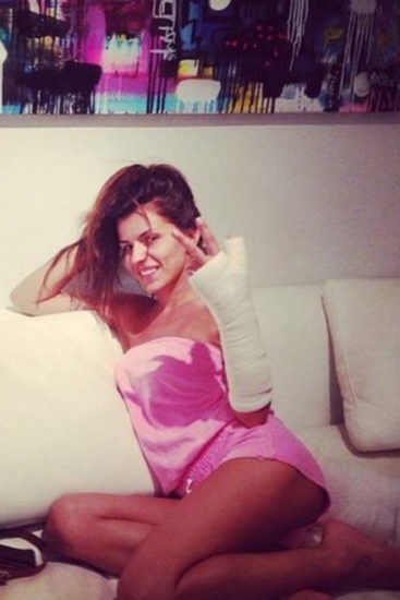 Φαίνεται όμως ότι αυτό δεν την έριξε ψυχολογικά και προσπάθησε κάπως να το διασκεδάσει, γι΄αυτό και ανέβασε μια φωτογραφία στο instaram όπου τη βλέπουμε να κάνει το σήμα τις νίκης με το σπασμένο της χέρι που είναι στον γύψο και με εμφανώς χιουμοριστική διάθεση να σχολιάζει στο hastag: #kouli.