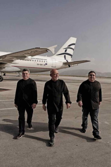 Οι Λευτέρης Λαζάρου, Χριστόφορος Πέσκιας, Στέλιος Παρλιάρος δημιουργούν το νέο μενού της Business Class της Aegean, έχοντας συνοδοιπόρο τον Master of Wine Κωνσταντίνο Λαζαράκη για τις οινικές επιλογές.