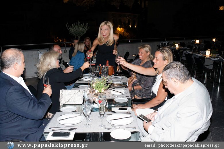 Οικοδέσποινα της βραδιάς η κυρία Ελένη Αντωνιάδου που προσκάλεσε εκλεκτούς φίλους σε ένα ξεχωριστό βράδυ, στο Εστιατόριο του Μουσείου της Ακρόπολης.