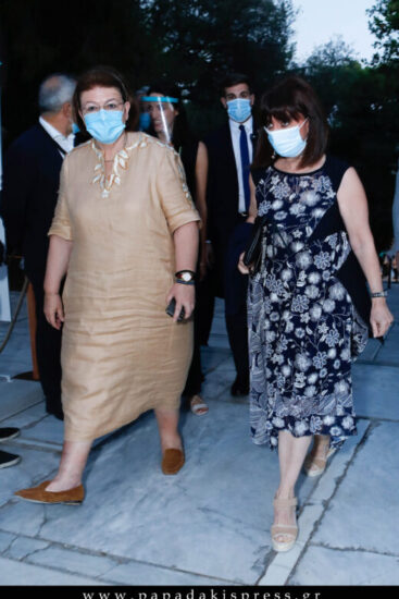 Κατά την άφιξή της στο χώρο του Ωδείου Ηρώδου του Αττικού, η Πρόεδρος της Δημοκρατίας συνομίλησε με την Υπουργό Πολιτισμού Λίνα Μενδώνη, καθώς και με την καλλιτεχνική διευθύντρια του φεστιβάλ, Κατερίνα Ευαγγελάτου.