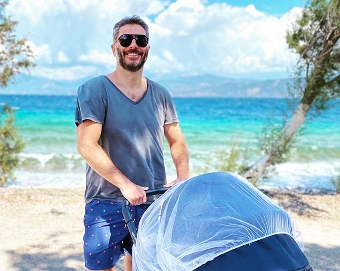 Μάλιστα ο δημοφιλής ηθοποιός πανευτυχής πήρε το κορότσι για να πάει το μωρό του βόλτα. Την τρυφερή φωτογραφία ανέβασε στο instagram γράφοντας: