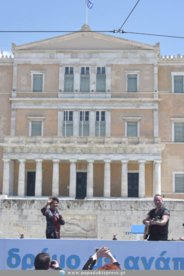 Έκανε μία στάση στον Εθνικό Kήπο κι ερμήνευσε τα τραγούδια της. Στη διαδρομή της πέρασε κι από το Μέγαρο Μαξίμου, όπου βγήκε και την χειροκρότησε και ο ίδιος πρωθυπουργός.