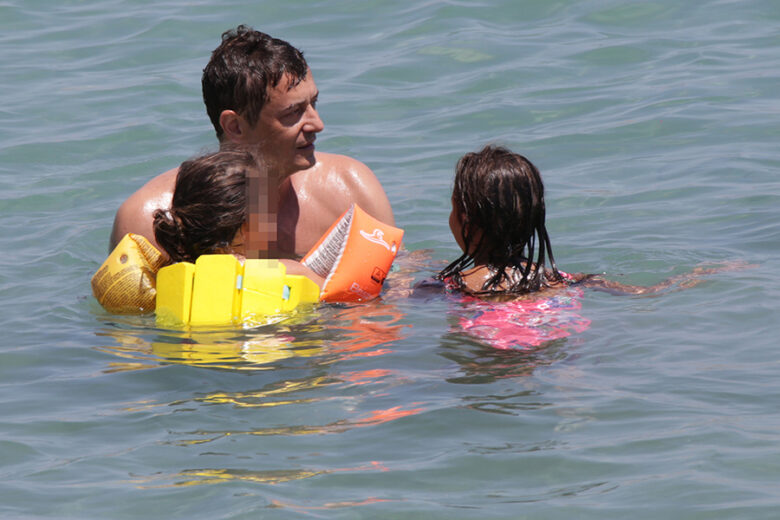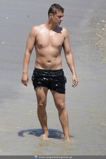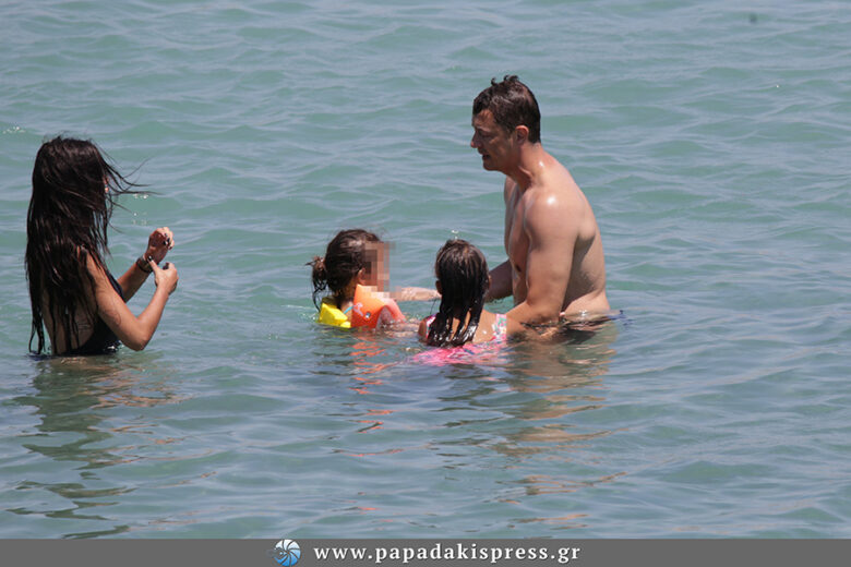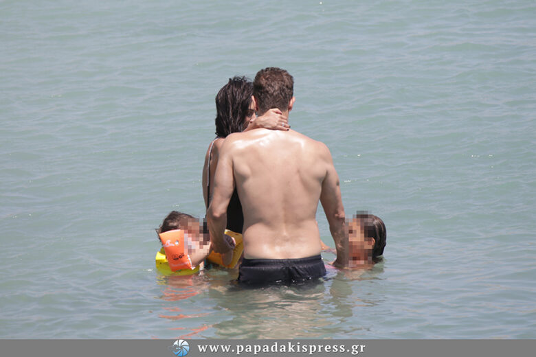 Ο δημοσιογράφος, έδειχνε να απολαμβάνει την κάθε στιγμή με την οικογένειά του και δε σταμάτησε να γελά και να κάνει παιχνίδια στη θάλασσα με τα παιδιά του.
