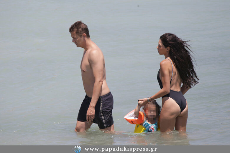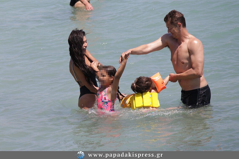 Εκεί τους συνάντησε ο φωτογραφικός μας φακός να απολαμβάνουν τον ήλιο και τη θάλασσα. Τόσο ο Αντώνης Σρόιτερ όσο και η σύζυγός του Ιωάννα Μπούκη πέρασαν πολλή ώρα μέσα στη θάλασσα παίζοντας με τις δύο τους κόρες.