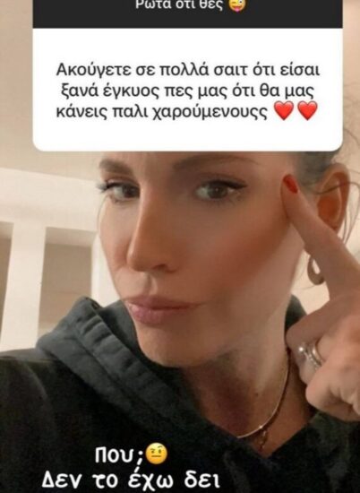 Η ερώτηση ήταν η εξής: «Ακούγεται σε πολλά sites ότι είσαι ξανά έγκυος. Πες μας ότι θα μας κάνεις πάλι χαρούμενους;» με την ηθοποιό να απαντά: «Που; Δεν το έχω δει».