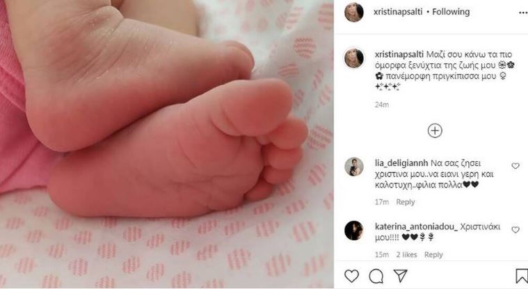 Η χαρούμενη μαμά για το χαρμόσυνο γεγονός ανάφερε: “Ήταν ότι ήθελα περισσότερο στη ζωή μου. Είμαι πολύ ευτυχισμένη!” Λίγες μέρες αργότερα και μέσα από το λογαριασμό της στο Instagram δημοσίευσε την πρώτη φωτογραφία με τη νεογέννητη κόρη της! Στη λεζάντα έγραψε με τρυφερά λόγια: “Μαζί σου κάνω τα πιο όμορφα ξενύχτια της ζωής μου! Πανέμορφη πριγκίπισσά μου!”
