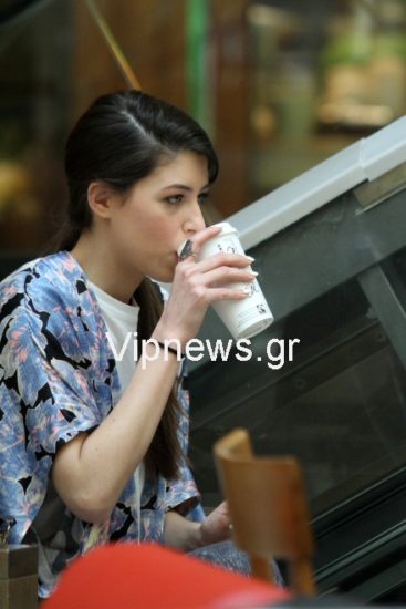 Ντυμένη απλά, αλλά με στυλ, μαγνήτισε τα βλέμματα και αφού τελείωσε τη βόλτα της κάθισε σε καφετέρια του εμπορικού κέντρου, όπου απόλαυσε τον καφέ της.