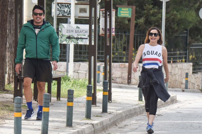 Τη συναντήσαμε να κάνει δυναμικό βάδην , παρέα με τον φίλο της, γνωστό σχεδιαστή μόδας, Δημήτρη Μαστρόκαλο, στα νότια προάστια.