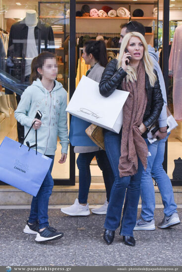 Ο φωτογραφικός μας φακός, τη συνάντησε στην Κηφισιά, όπου μαζί με την Λάουρα, δοκίμαζαν ρούχα σε κατάστημα, με την ίδια να δίνει τις στιλιτικές της συμβουλές στην κόρη της προκειμένου να κάνει τις καλύτερες επιλογές. Μητέρα και κόρη έκαναν τις αγορές τους και χαρούμενες έφυγαν από το μαγαζί, με την παρουσιάστρια, να είναι πάντως απορροφημένη για λίγα λεπτά μιλώντας για λίγο στο κινητό της.