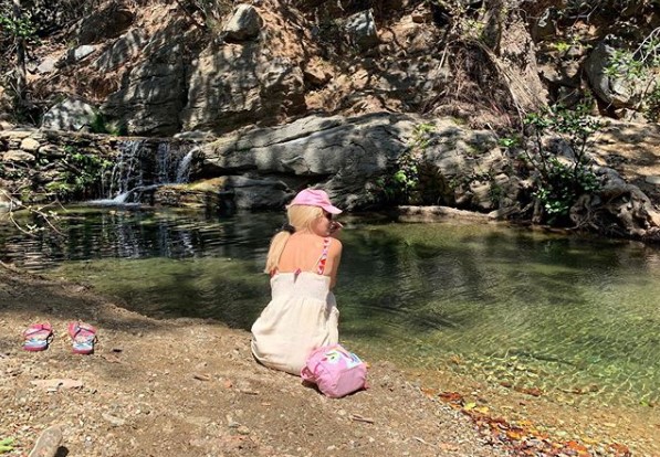 Φορώντας ένα ροζ καπελάκι της κόρης απολαμβάνει την ηρεμία και την ομορφιά της φύσης. Αυτή την όμορφη στιγμή πόσταρε στη σελίδα της στο instagram γράφοντας: