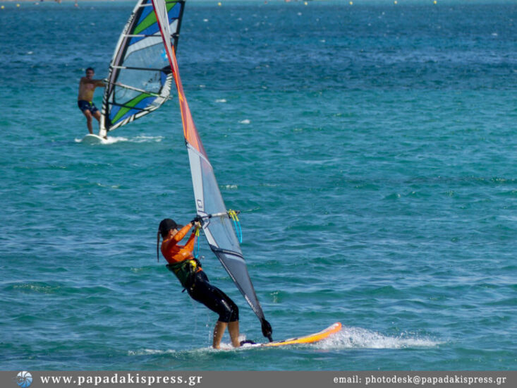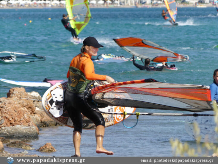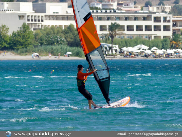 Εκεί, επιδόθηκε στο αγαπημένο της θαλάσσιο σπορ, το wind surf. Μαζί της ήταν ο άνδρας της Θοδωρής Μαροσούλης που τη θαύμαζε και την ενθάρρυνε.