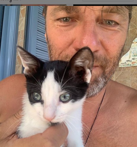 «Καινούργιο μέλος…τον βρήκαμε στην Μήλο μόνο του…και το όνομα αυτού tricky ….» έγραψε στη λεζάντα της φωτογραφίας που δημοσίευσε στον προσωπικό του λογαριασμό στο Instagram