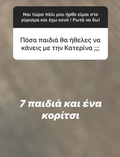 Έτσι, ανάμεσα στις απορίες των followers του ήταν το γιατί χώρισαν με την ηθοποιό αλλά και πόσα παιδιά σκοπεύει να κάνει με την Κατερίνα.