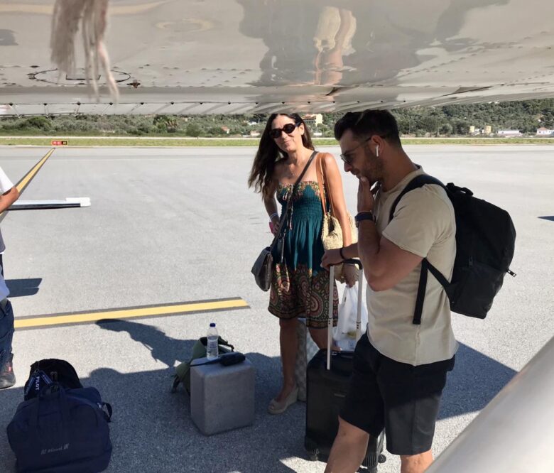 Ο Γιώργος Αγγελόπουλος που  πλέον ακολουθεί καριέρα ηθοποιού αλλά δραστηριοποιείται και επιχειρηματικά στο νησί, έφθασε στη Σκιάθο πετώντας…