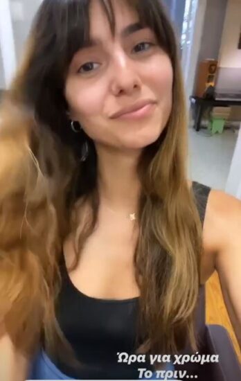 Πριν λίγες εβδομάδες, κατά τη διάρκεια των διακοπών της είχε curtain bangs. Δηλαδή αφέλειες που έχουν μακρύνει. Τώρα, θέλησε να δώσει ένα πιο αυστηρό αποτέλεσμα κόβοντάς τες. Μάλιστα, δημοσίευσε μια φωτογραφία με το νέο της hairlook δηλώνοντας ενθουσιασμένη. Από το πλευρό της δεν έλειπε και ο αγαπημένος της Snik.