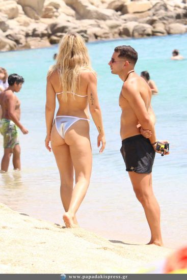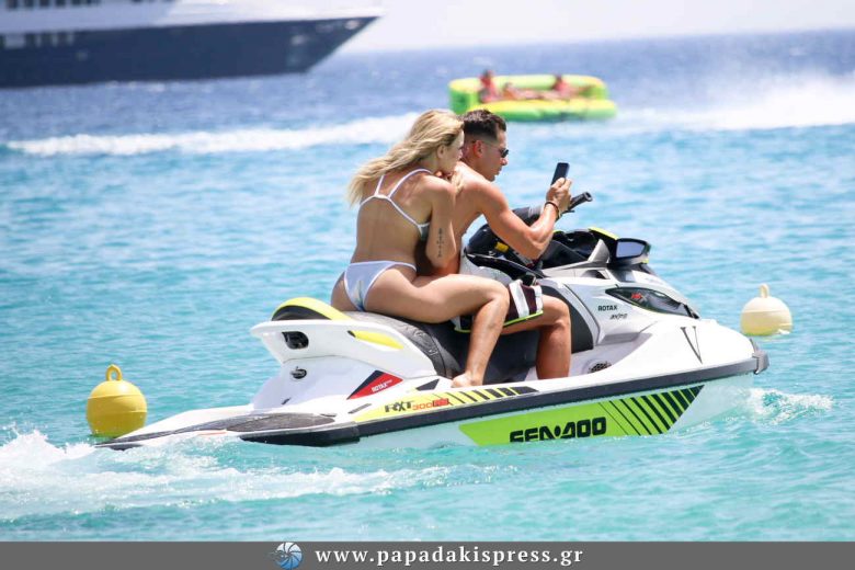 Ο φωτογραφικός μας φακός εντόπισε το ζευγάρι, το οποίο δείχνει πιο ευτυχισμένο από ποτέ μετά την επανασύνδεση, να απολαμβάνει τις διακοπές του στη Μύκονο. Η τραγουδίστρια και ο Κύπριος επιχειρηματίας έκαναν τις βουτιές τους σε κοσμοπολίτικη παραλία του νησιού και δάμασαν τα κύματα πάνω στο jet ski.