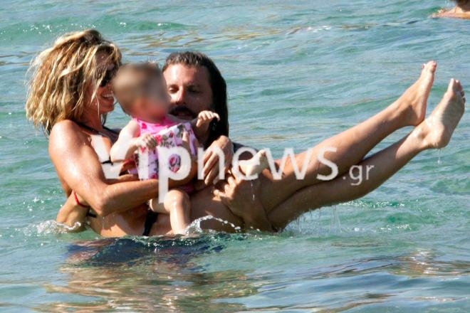 Κατερίνα Λάσπα- Νεκτάριος Νικολόπουλος με τη κορούλα τους στη Μύκονο