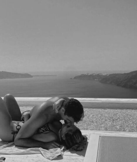 Οι δυο τους ποζάρουν αγκαλιά με φόντο την μαγευτική Σαντορίνη και φαίνονται πιο ευτυχισμένοι και ερωτευμένοι από ποτέ!