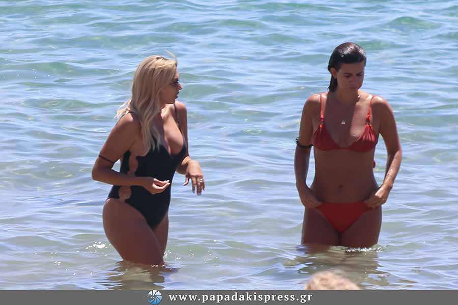 Όπως ήταν φυσικό, η παρουσία της στην παραλία της Βουλιαγμένης δεν πέρασε απαρατήρητη και αρκετοί έσπευσαν να τη χαιρετήσουν από κοντά. Η ίδια επέλεξε για την παρουσία της στην παραλία, ένα άκρως αποκαλυπτικό μαγιό, το οποίο τόνιζαν χρυσοί κρίκοι οι οποίοι βρίσκονταν στο πλάι. Το μαύρο, ολόσωμο μαγιό, αναδείκνυε τις καμπύλες της και την έκανε να φαίνεται πιο σέξι από ποτέ.
