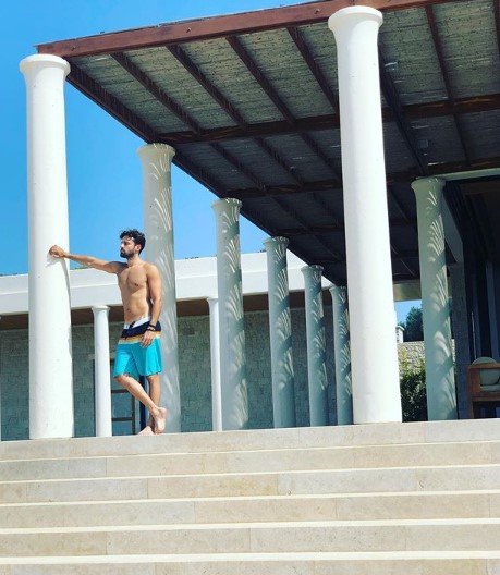 Πρόσφατα πήγε Πόρτο Χέλι κι εκεί φωτογραφήθηκε δίπλα στη θάλασσα. Επίσης με φόντο αρχαιοπρεπείς κολόνες γνωστού resort. Και στις δύο περιπτώσεις ήταν…θεός!