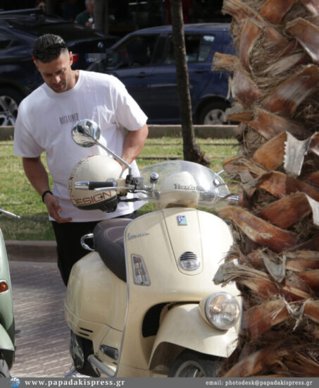 Ντυμένος casual, έφτασε εκεί με τη βέσπα του και απόλαυσε για αρκετή ώρα τη βόλτα και την παρέα φίλων του. Μαζί του δεν ήταν η Ευριδίκη Βαλαβάνη. Φαίνεται πως οι δυο τους έχουν συμφωνήσει ότι χρειάζεται να περνούν χρόνο και εκτός σπιτιού με αγαπημένα πρόσωπα.