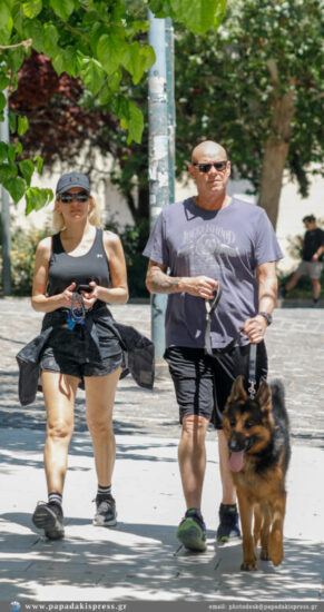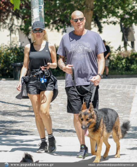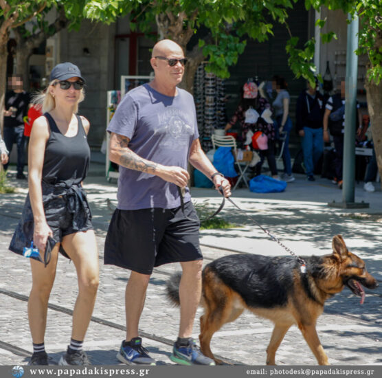 Πότε μόνοι τους και πότε με την παρέα των σκύλων τους, οι δύο τους απολαμβάνουν τον περπάτημα σε όμορφες γειτονιές του κέντρου. Σε μια από τις βόλτες τους αυτές, τους συνάντησε και ο φωτογραφικός φακός. Χαμογελαστοί κι ευδιάθετοι, απολάμβαναν τον όμορφο καιρό και περπάτησαν για αρκετή ώρα, έχοντας μαζί και ένα από τα αγαπημένα τους σκυλιά.