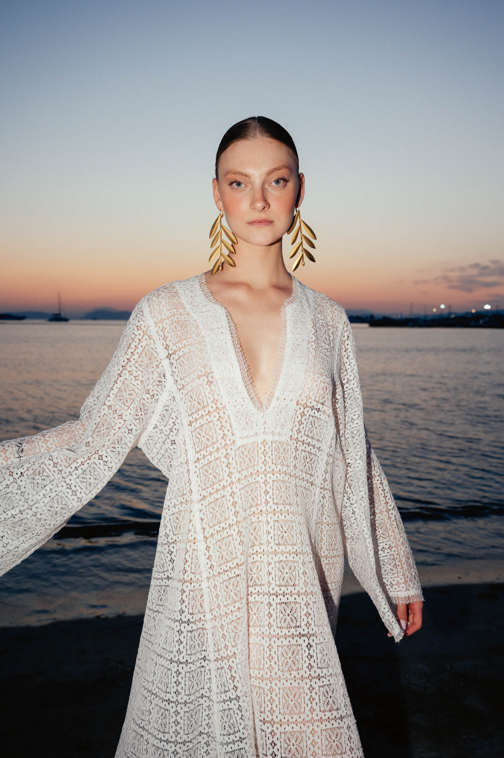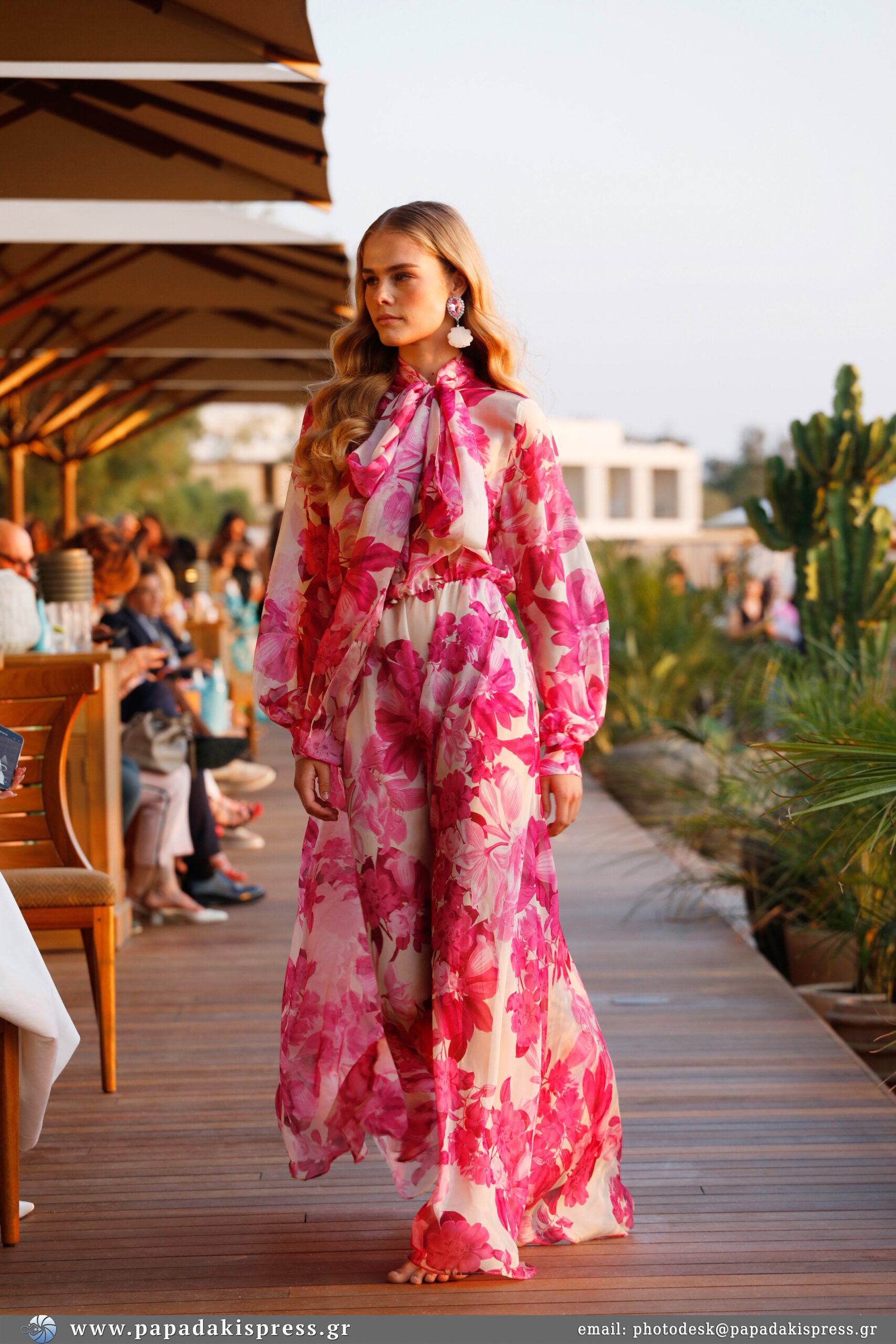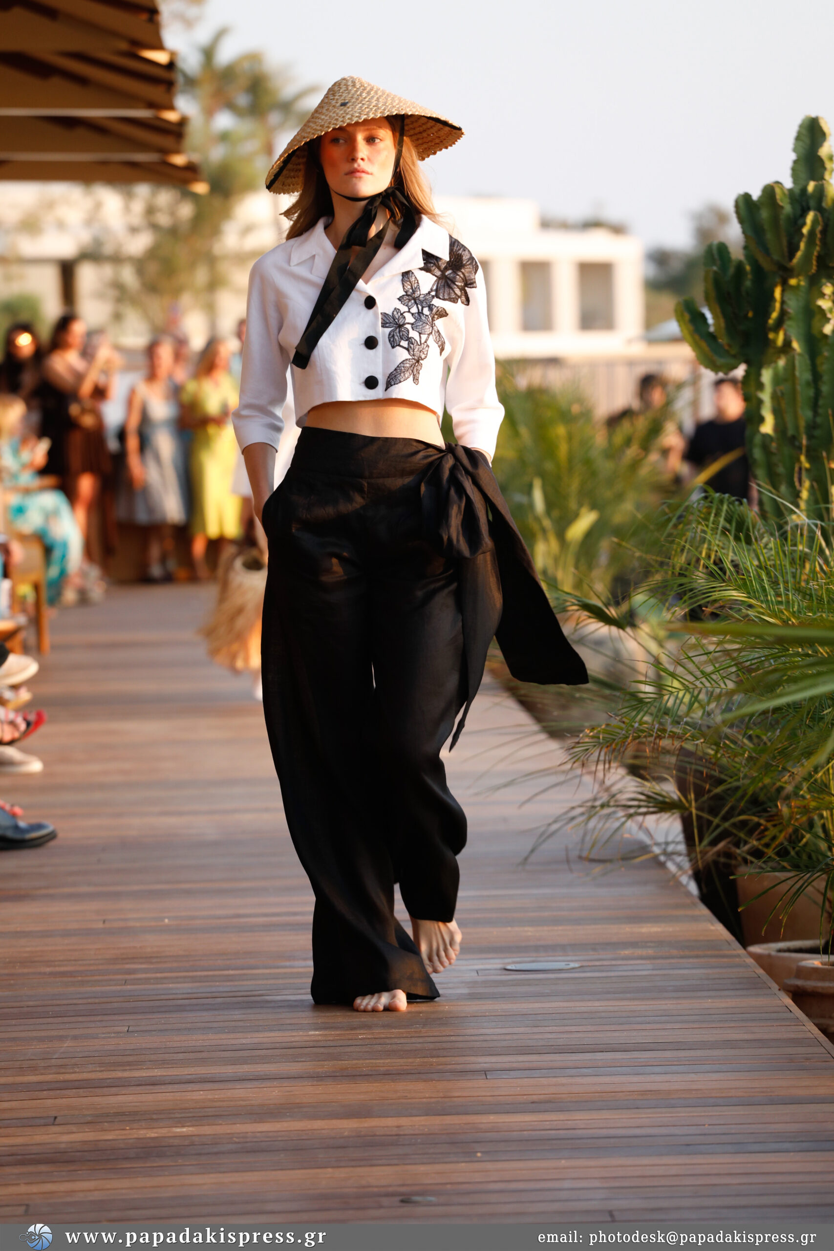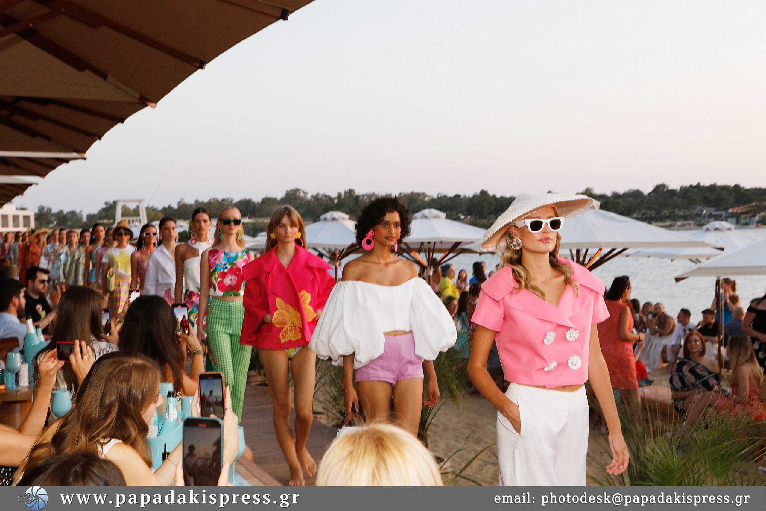 Η επίδειξη μόδας πραγματοποιήθηκε στην παραλία, με τίτλο «Κορίτσια στον Ήλιο», αντλώντας έμπνευση από την ατμόσφαιρα του ελληνικού σινεμά των ’60s και την κλασική θηλυκότητα.